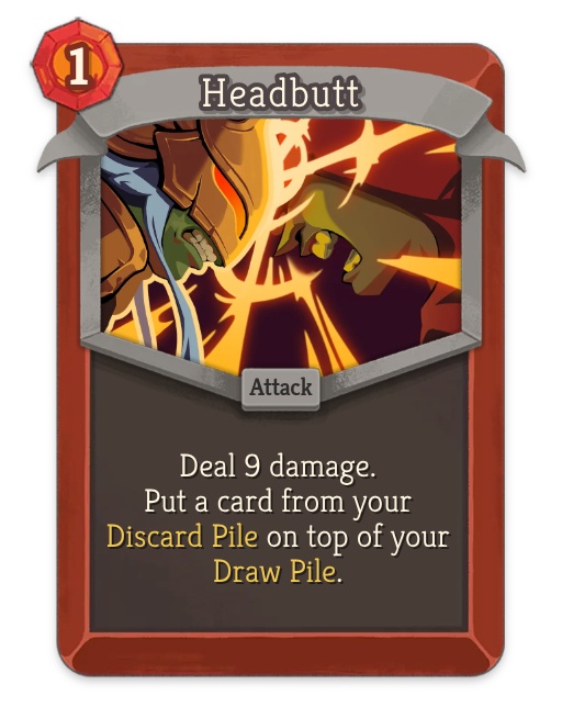 - Headbutt: Allows you to plan future turns by putting a key card from your discard on top of your draw pile. Pairs perfectly with future card draw.